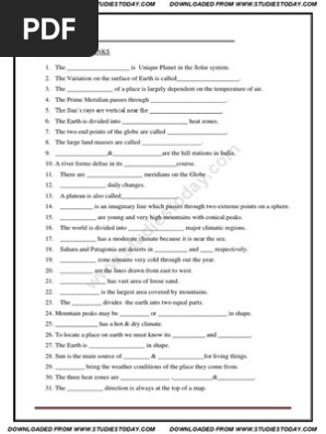 Download Globes And Maps Class 6 Worksheets