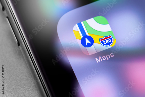 Apple Maps App Close Up On Iphone Smart Phone Screen Stock - Source